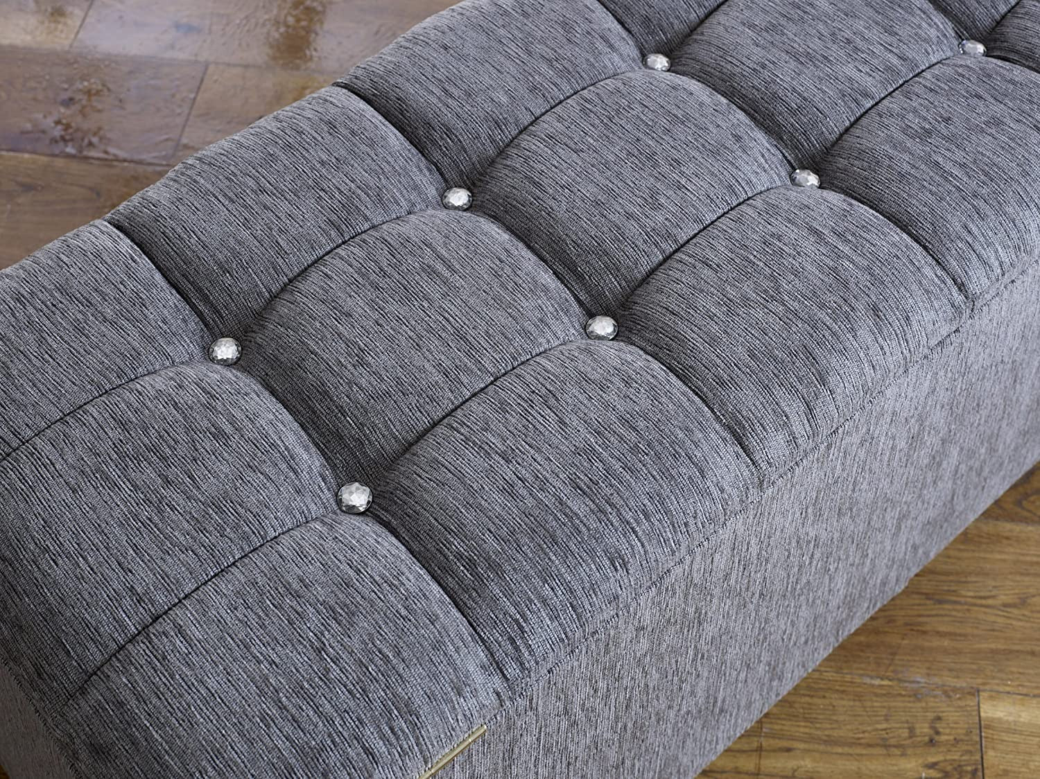 Enhance your bedroom with our stylish Upholstered chesterfield ottoman storage box, crafted to bring charm and convenience to your space. Made from soft, premium fabric and finished with elegant button detailing, it's both stylish and practical.
