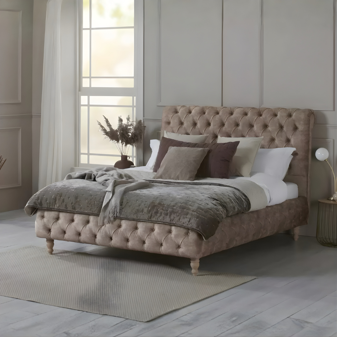We have all sizes available, from 3ft small to 6ft super king size. The purpose is to make sure no one goes unsatisfied. If you want to make some alterations to the fabric, we have Crush velvet Plush Velvet Chenille and Naples. Select one per your desires and make your bedroom the best place. Lily Sleigh Bed Frames: The Best Comfort and Support introducing the Lily Sleigh Bed Frames at RN Interiors LTD, a stunning bedstead designed with a high end, luxury in mind, with plenty of comfort and support. Read on to learn more about this gorgeous bed frame, which was created to ensure the best sleeping experience possible, with features that will elevate your comfort and improve your well-being.
