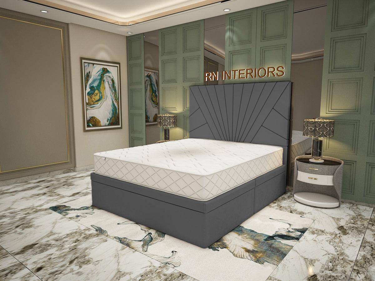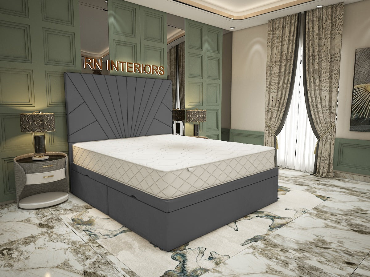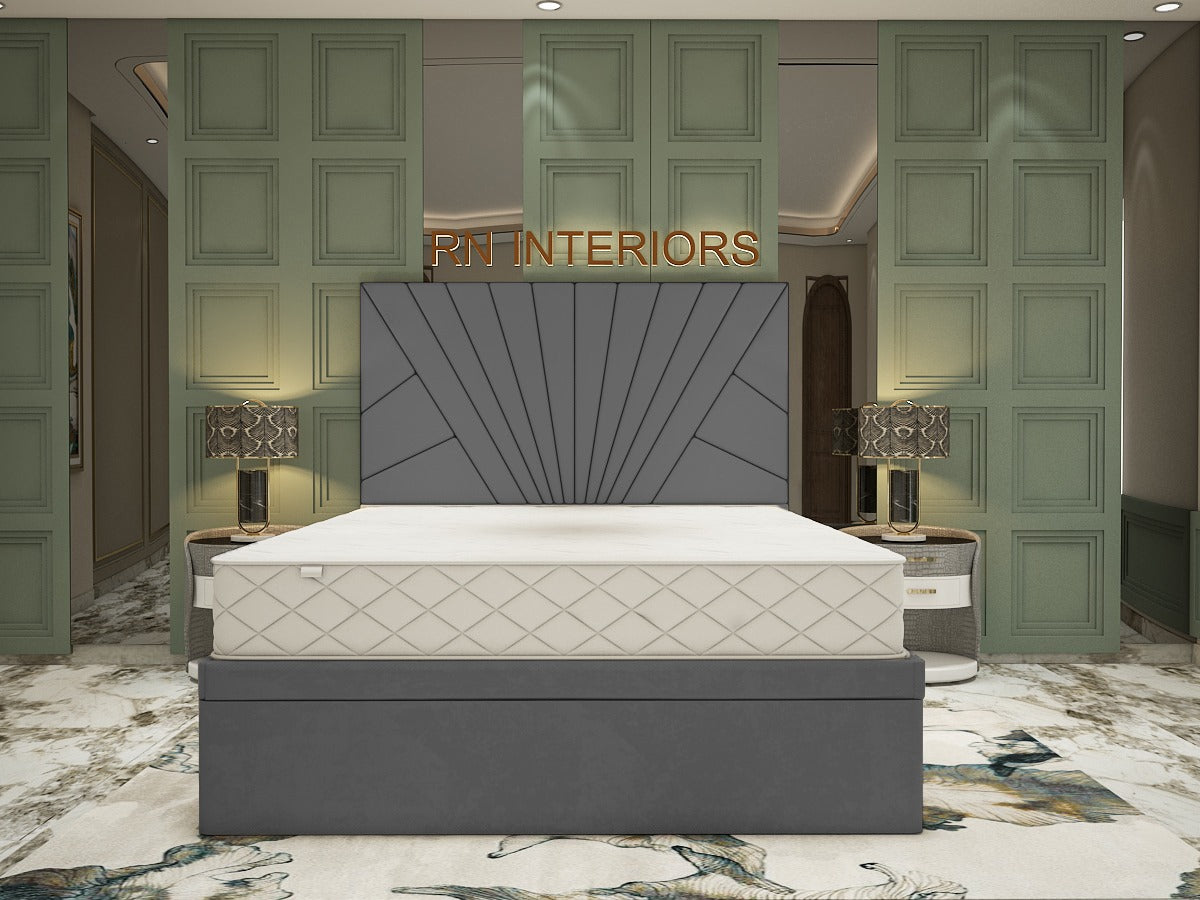Introducing the Aurora Dream Single Divan Bed with Storage from RN Interiors LTD, the UK’s largest furniture brand. Featuring a unique Sunrise design headboard, it adds a bold and elegant touch to your room. The clever sidelift divan base gives you extra storage without taking up extra space. Available in all colours, fabrics, and sizes to fit your style perfectly. The ideal mix of beauty, function, and comfort—perfect for modern living!