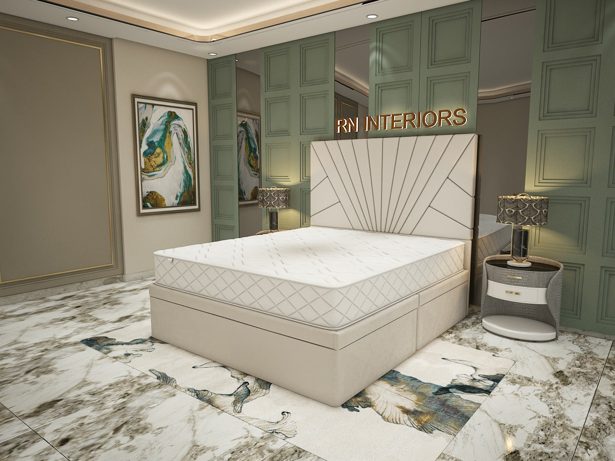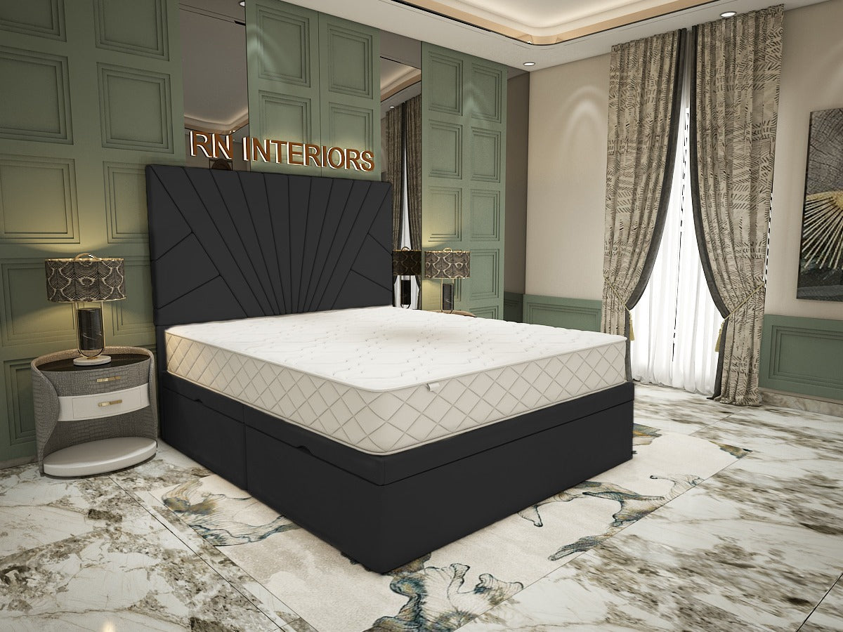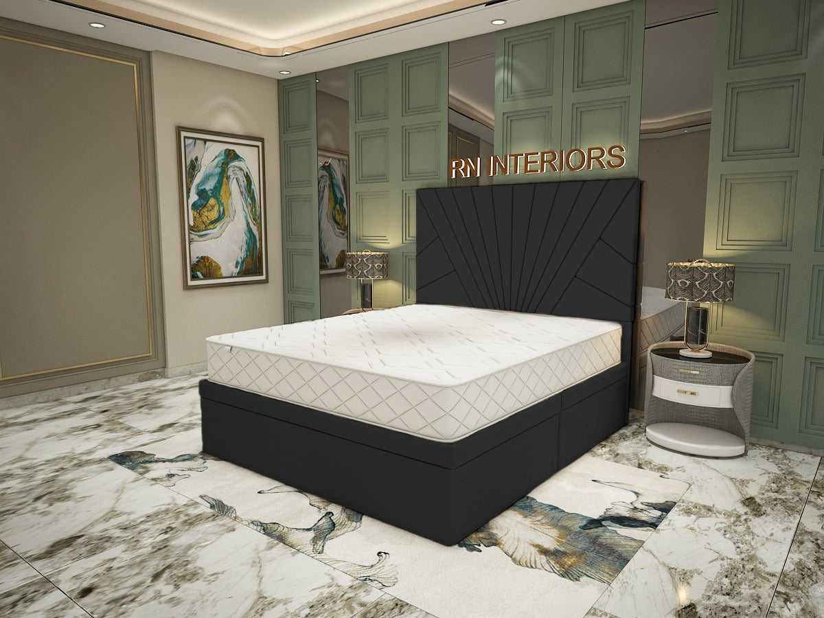 Introducing the Aurora Dream Single Divan Bed with Storage from RN Interiors LTD, the UK’s largest furniture brand. Featuring a unique Sunrise design headboard, it adds a bold and elegant touch to your room. The clever sidelift divan base gives you extra storage without taking up extra space. Available in all colours, fabrics, and sizes to fit your style perfectly. The ideal mix of beauty, function, and comfort—perfect for modern living!
